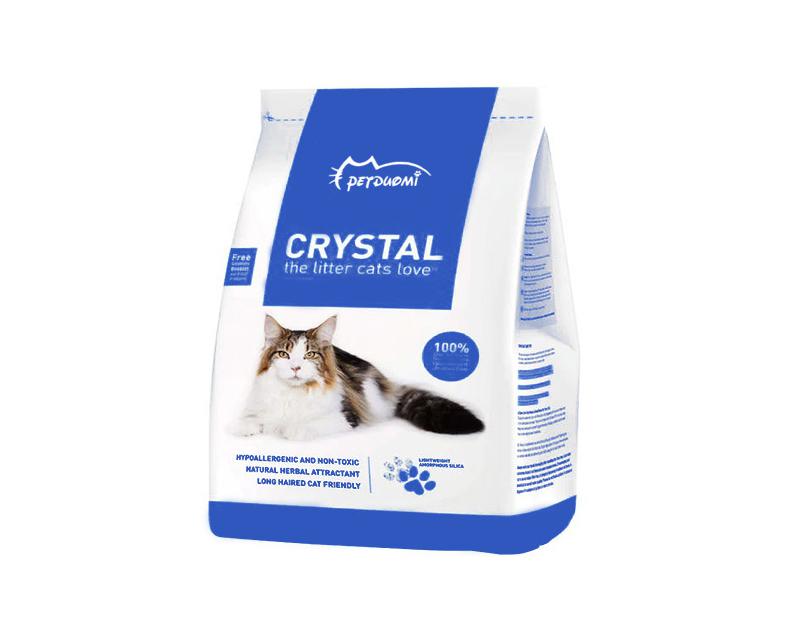 Crystal cat litter is also known as silicone cat litter and silica cat litter.The main component is silica.It is a kind of green and environmentally friendly product for household use, and the cat litter after use can be dug and buried.The appearance of silicone cat litter is white granular, and it is light in weight and low in crushing, which can inhibit the growth of bacteria.