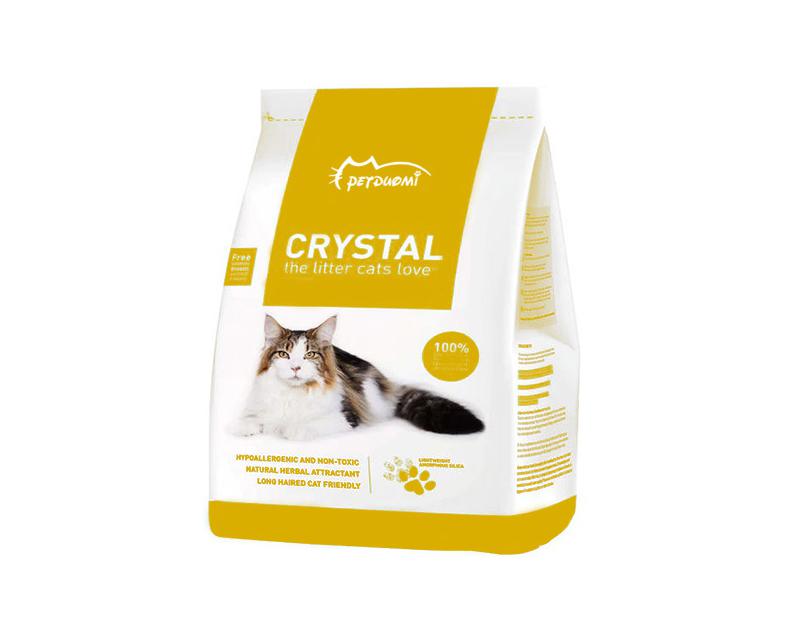 Crystal cat litter is also known as silicone cat litter and silica cat litter.The main component is silica.It is a kind of green and environmentally friendly product for household use, and the cat litter after use can be dug and buried.The appearance of silicone cat litter is white granular, and it is light in weight and low in crushing, which can inhibit the growth of bacteria.